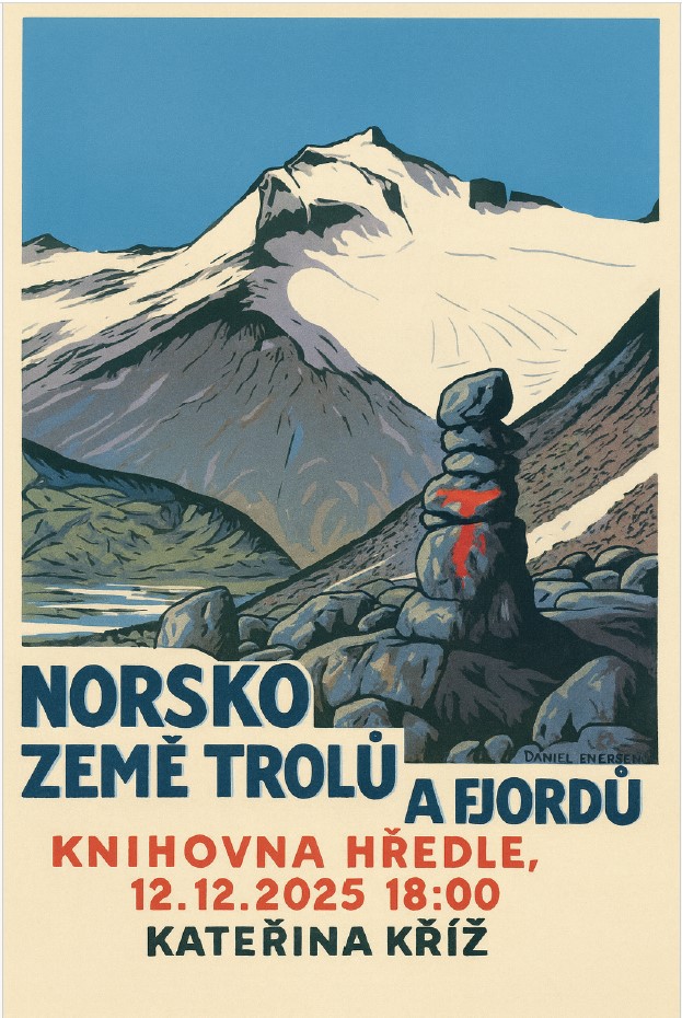 Vážení spoluobčané, hředelská knihovna vás srdečně zve na další cestovatelskou přednášku, která bude tentokrát vánočně obohacena. Téma: Norsko Přednášející: Kateřina Kříž, absolventka norské univerzity - mnozí ji znáte, neboť má trvalé bydliště v Hředlích! Přijďte si poslechnout fascinující povídání o této zajímavé zemi, plné fjordů, jezer, vodopádů a hor na jedné straně, a o sobech, losech, pižmoních, polárních liškách a všudypřítomných trolech na straně druhé. Kdy: 12. prosince 2025 Kde: Obecní knihovna Hředle Čas: 18:00 hodin Těšíme se na vaši účast!